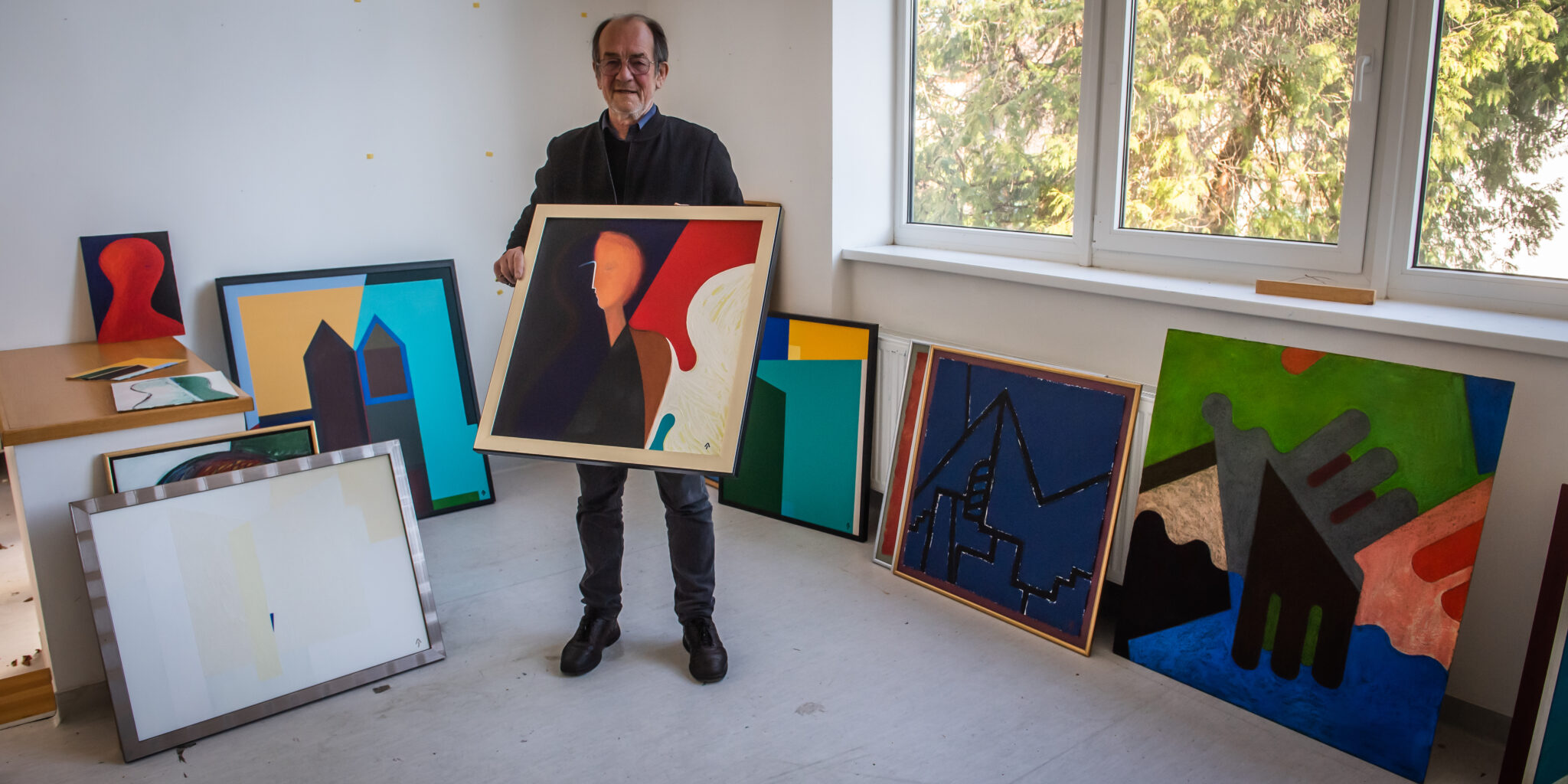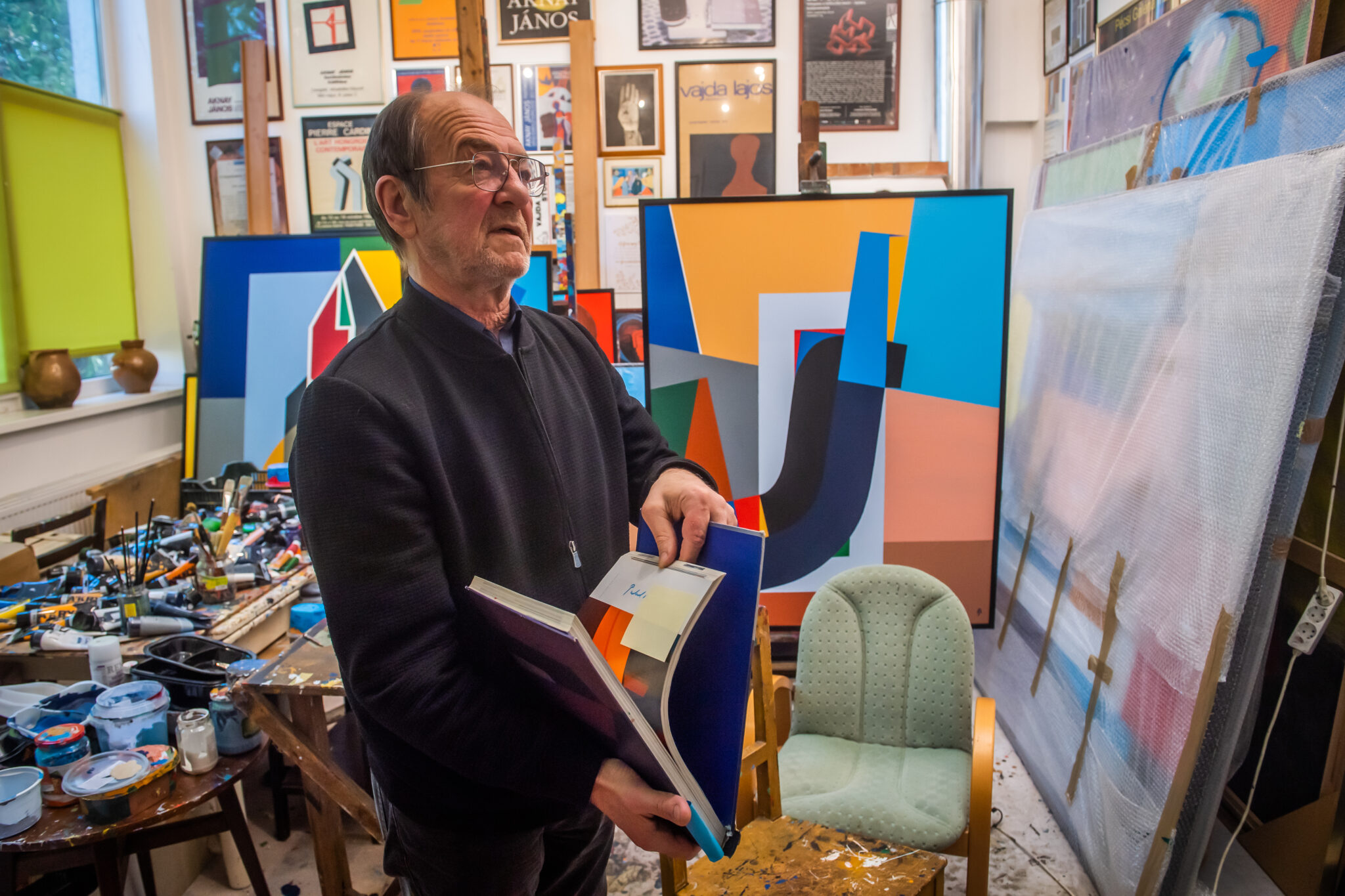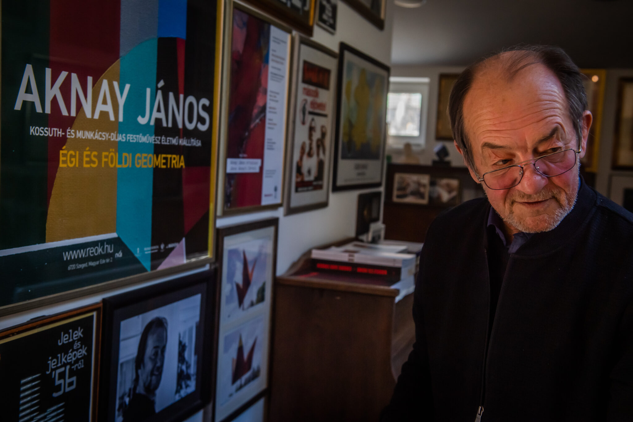 Egymásnak adjuk a kilincset a képkeretező mesterrel Aknay János műtermében. Méretes vásznakat hozott, a művész rendelte őket, újabb nagy méretű képet szeretne festeni. Nagy nehezen talál nekik helyet a Régi Művésztelepen lévő műtermében, amelyről le sem lehet tagadni, hogy aktívan használják. A nagyobbik helyiségben vásznak, festmények, festékek sorakoznak egymás mellett: itt szokott alkotni a művész. A hátsó, kisebb szoba falát beborítják őseinek, családjának a fényképei, köztük gyermekei: Csaba, Sarolta, Zoltán, Janka fotói is.