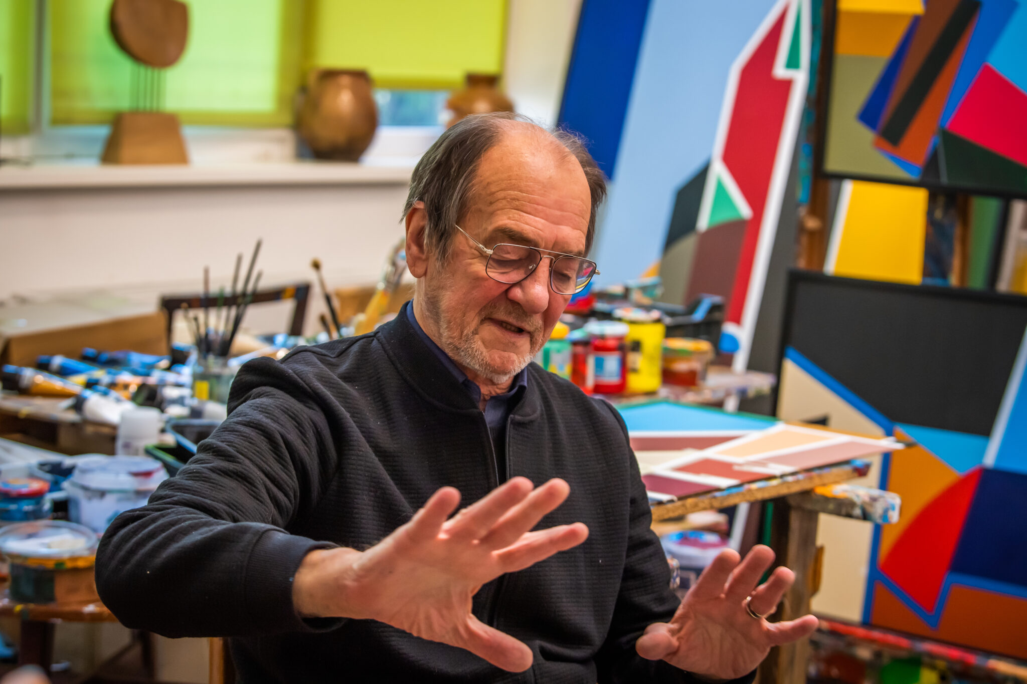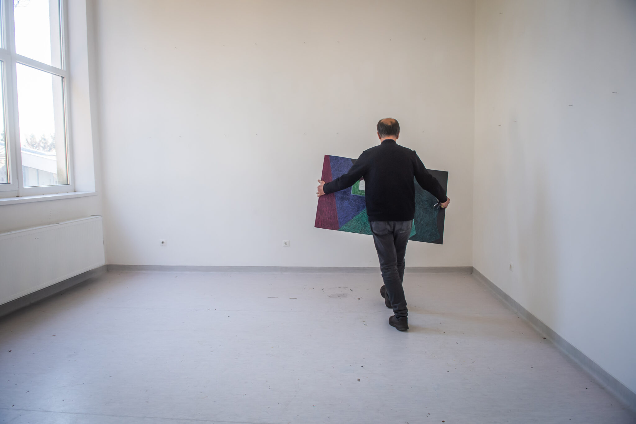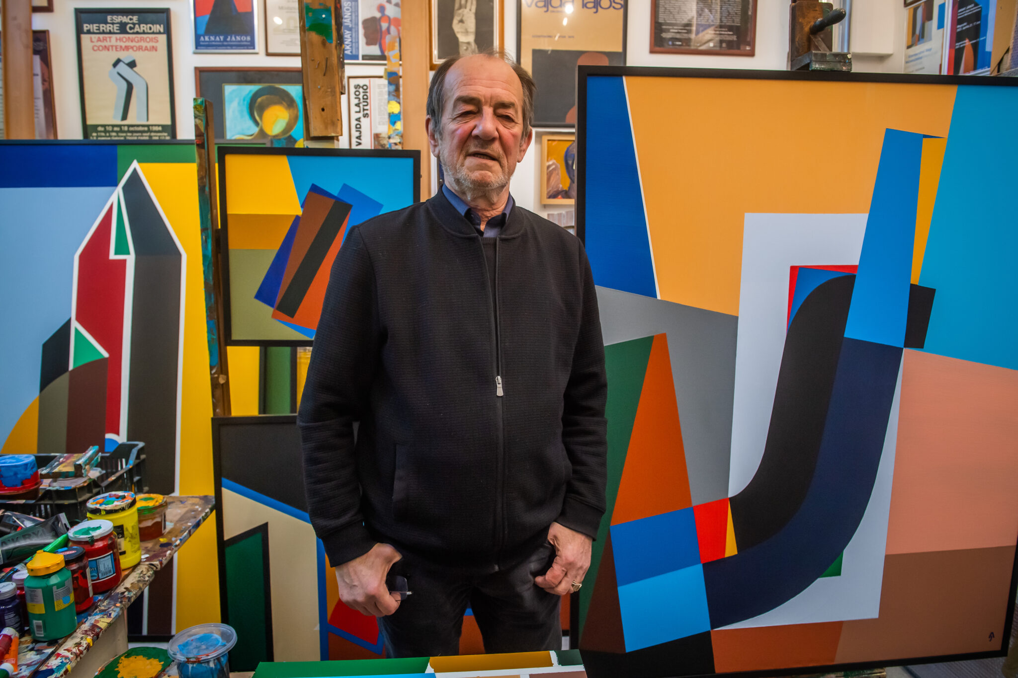 Egymásnak adjuk a kilincset a képkeretező mesterrel Aknay János műtermében. Méretes vásznakat hozott, a művész rendelte őket, újabb nagy méretű képet szeretne festeni. Nagy nehezen talál nekik helyet a Régi Művésztelepen lévő műtermében, amelyről le sem lehet tagadni, hogy aktívan használják. A nagyobbik helyiségben vásznak, festmények, festékek sorakoznak egymás mellett: itt szokott alkotni a művész. A hátsó, kisebb szoba falát beborítják őseinek, családjának a fényképei, köztük gyermekei: Csaba, Sarolta, Zoltán, Janka fotói is.