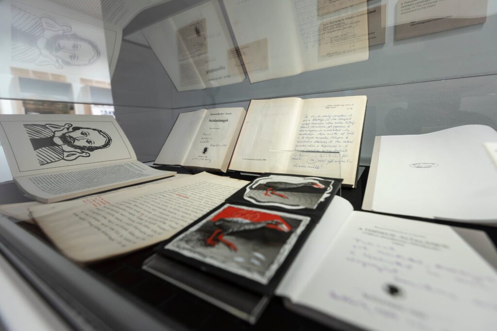 A Ferenczy Múzeumi Centrum Minduntalan – Krasznahorkai László prózavilága című kiállítása (2025. június 15. – 2026. január 4.) az író jellegzetes motívumai, témái, illetve Tarr Bélával és másokkal való együttműködései mellett a szentendrei művészeti szcénához fűződő kapcsolatába is betekintést enged.